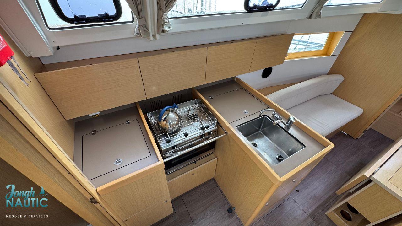 WC électrique, douchette de cockpit eau froide/chaude, table à cartes tribord repliable, réchaud four inox 2 feux, capote de roof gris anthracite neuve de 2024, arceau pour point d’écoute de GV, très grand Bimini Inox , taud de camping complet, bossoirs amovibles pour annexe, Éclairage indirect LED dans le carré, Plateforme arrière lattée teck ainsi que le carré, Assises barreur lattées teck , 2 Sac à drisses,
