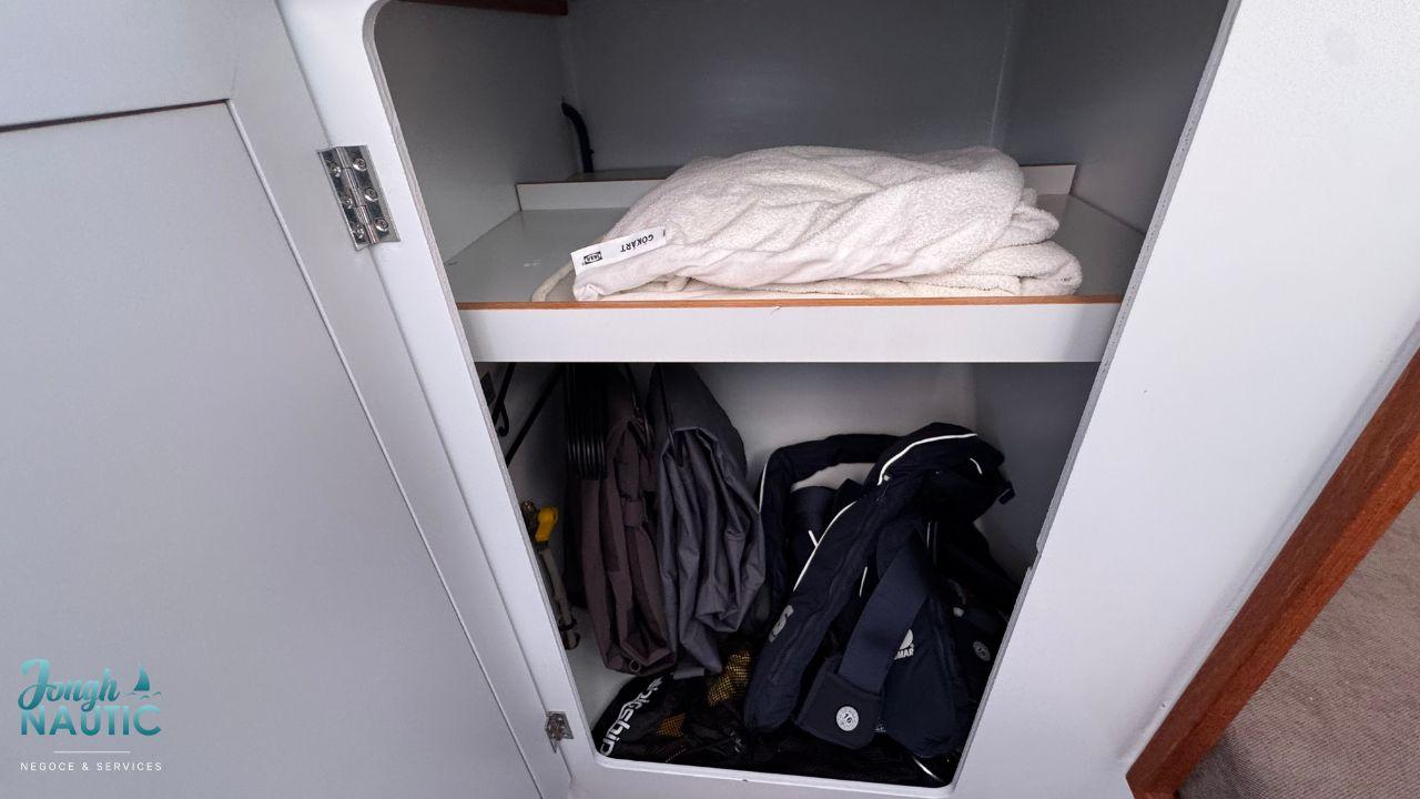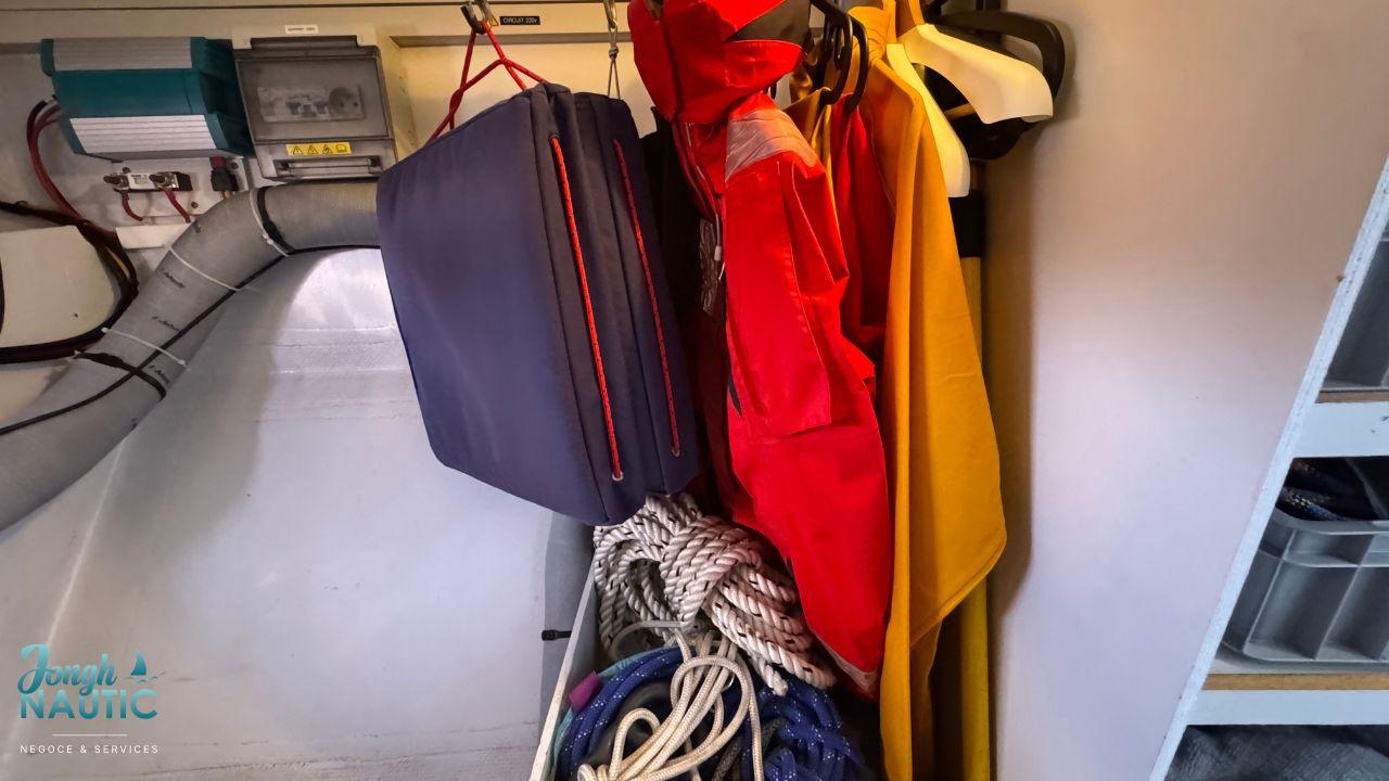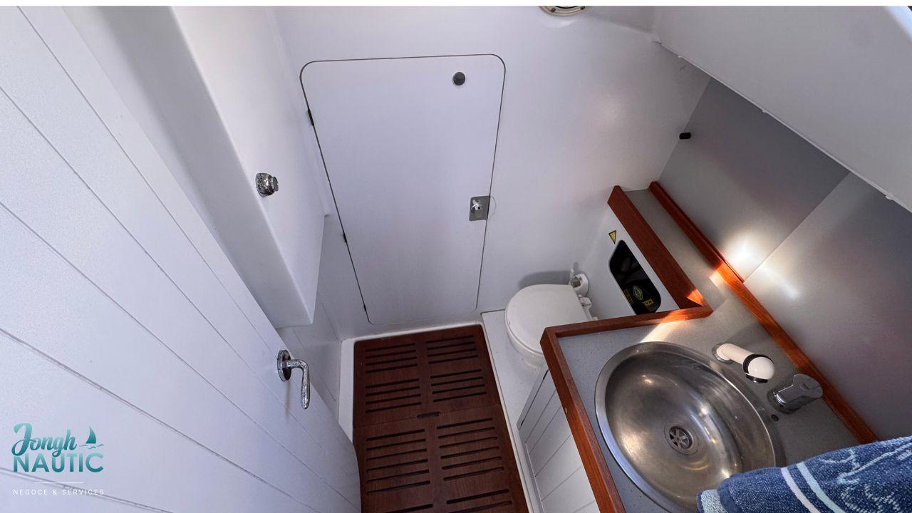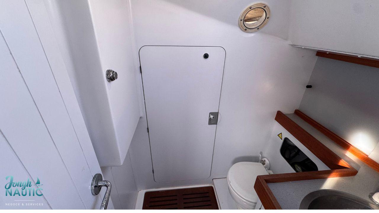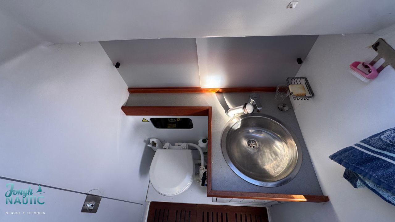 L’intérieur, lumineux et chaleureux, se distingue par de beaux volumes, une circulation fluide, et de nombreux rangements. Le carré spacieux, la cuisine fonctionnelle et les cabines confortables permettent de profiter pleinement de la vie à bord sur de longues navigations ou en croisière côtière.