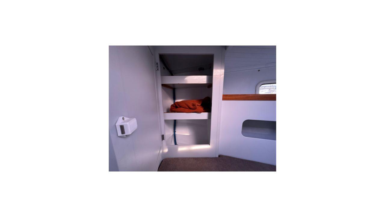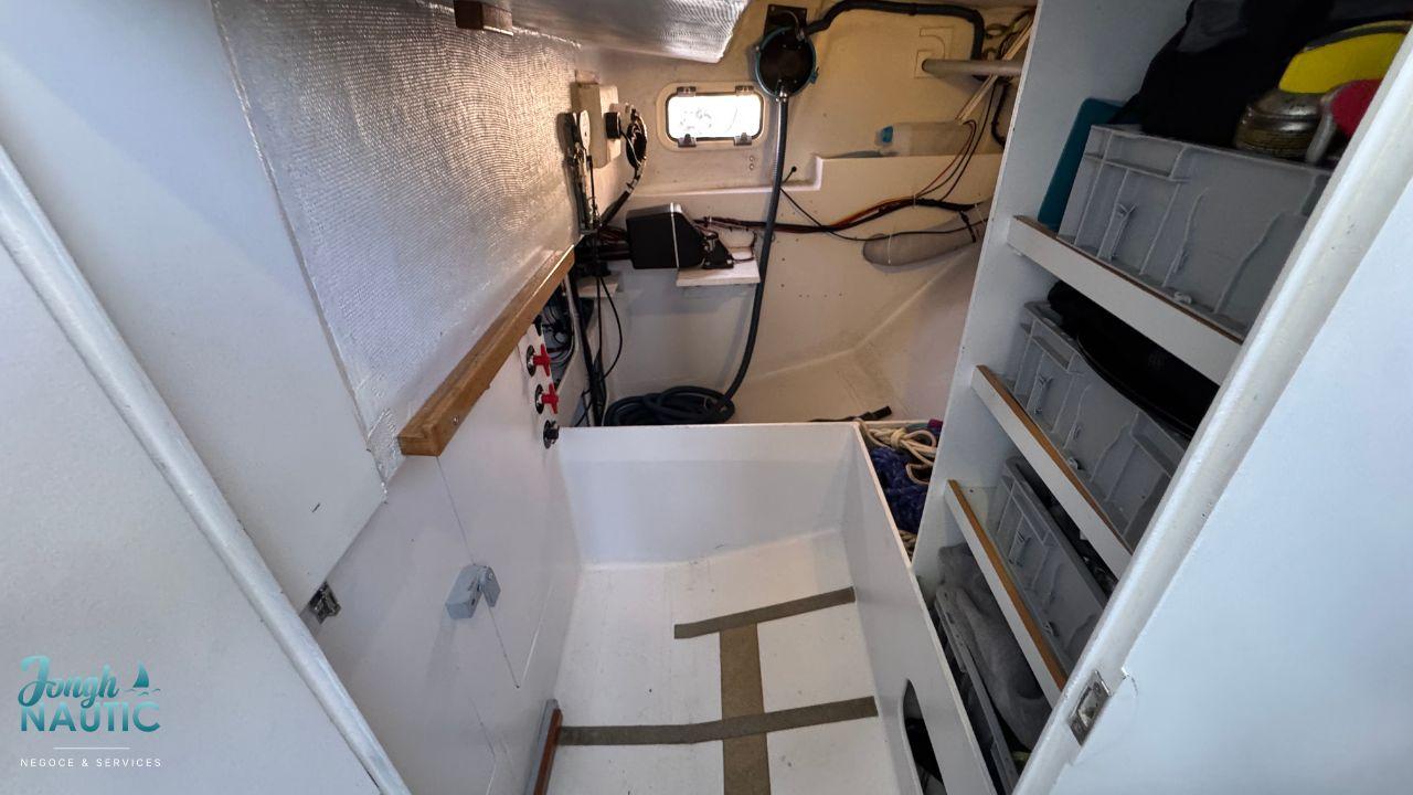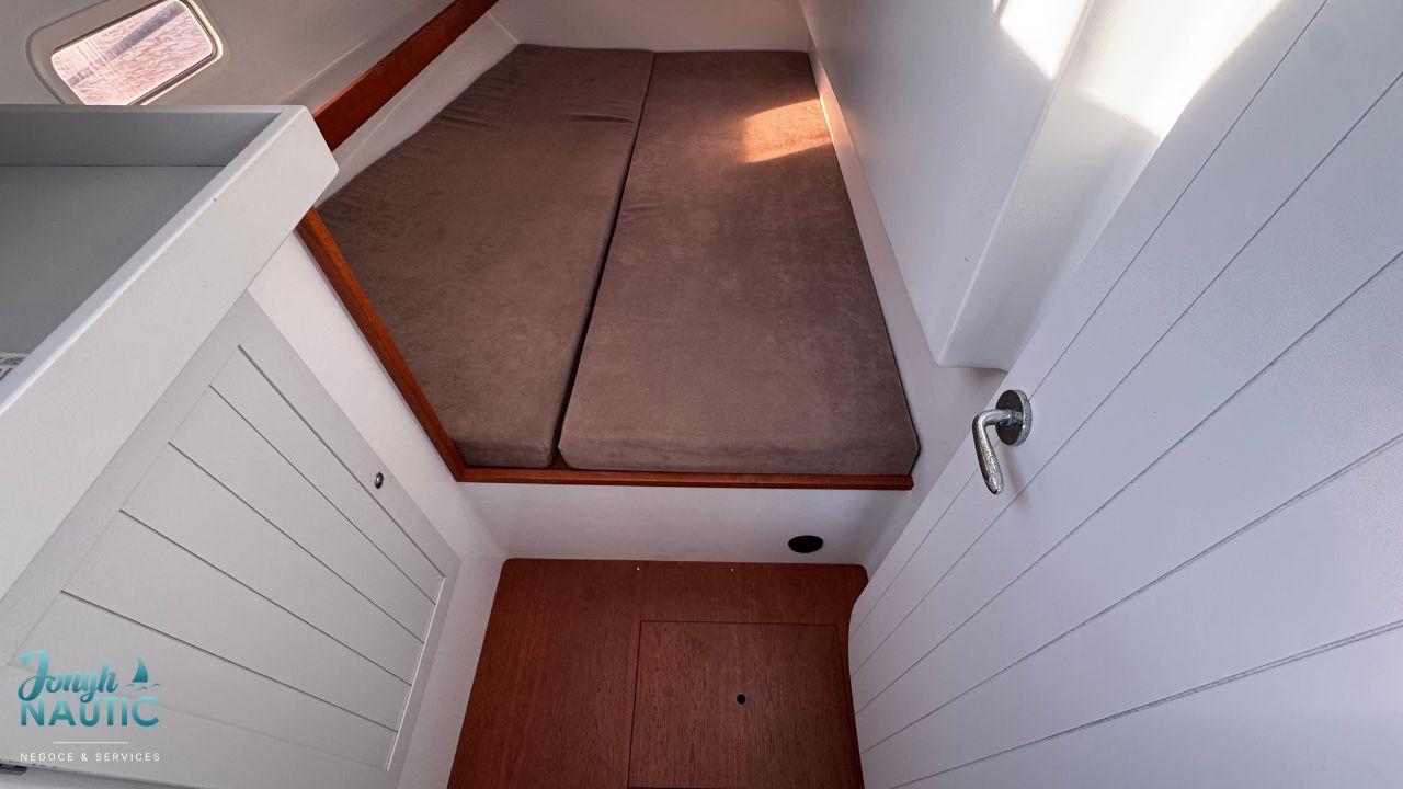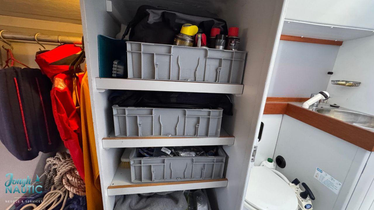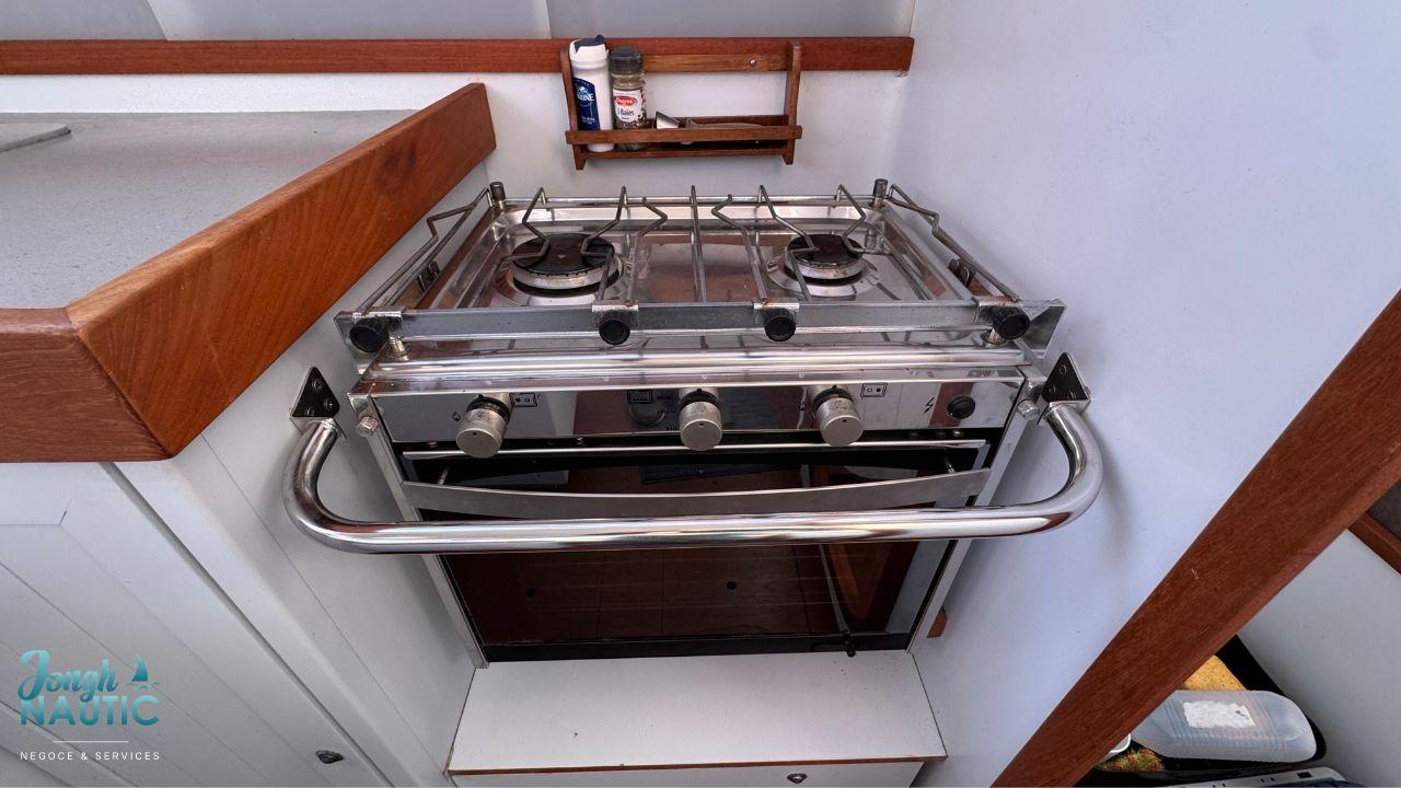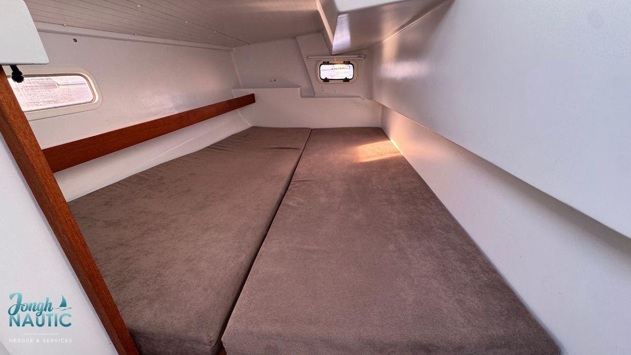 L’intérieur, lumineux et chaleureux, se distingue par de beaux volumes, une circulation fluide, et de nombreux rangements. Le carré spacieux, la cuisine fonctionnelle et les cabines confortables permettent de profiter pleinement de la vie à bord sur de longues navigations ou en croisière côtière.