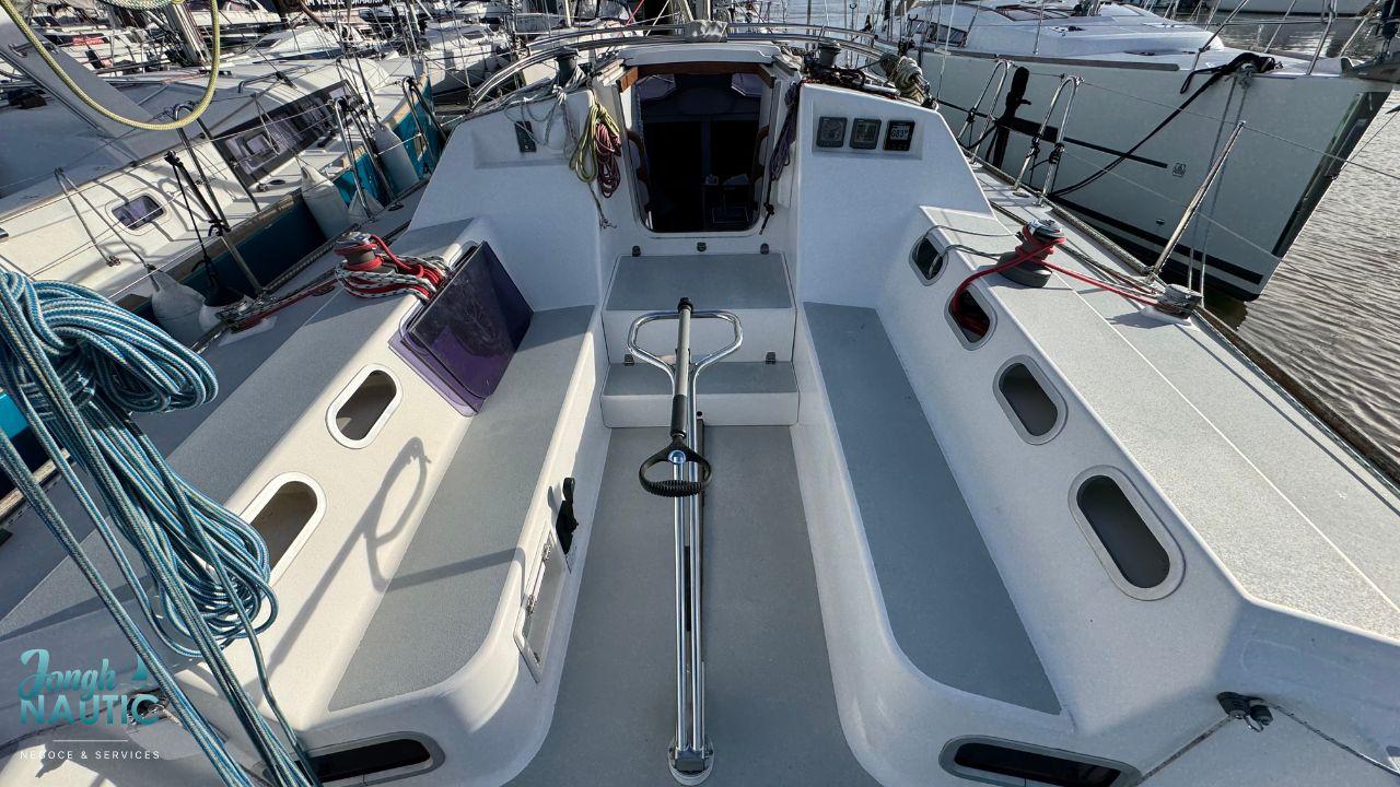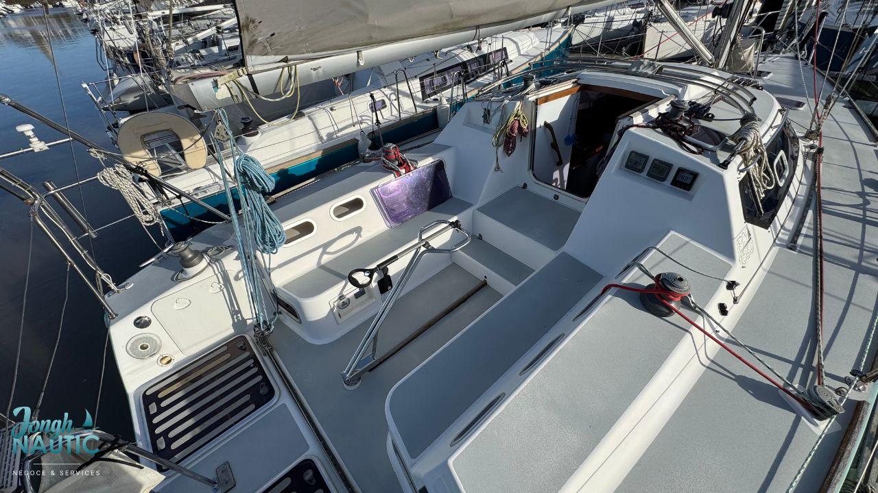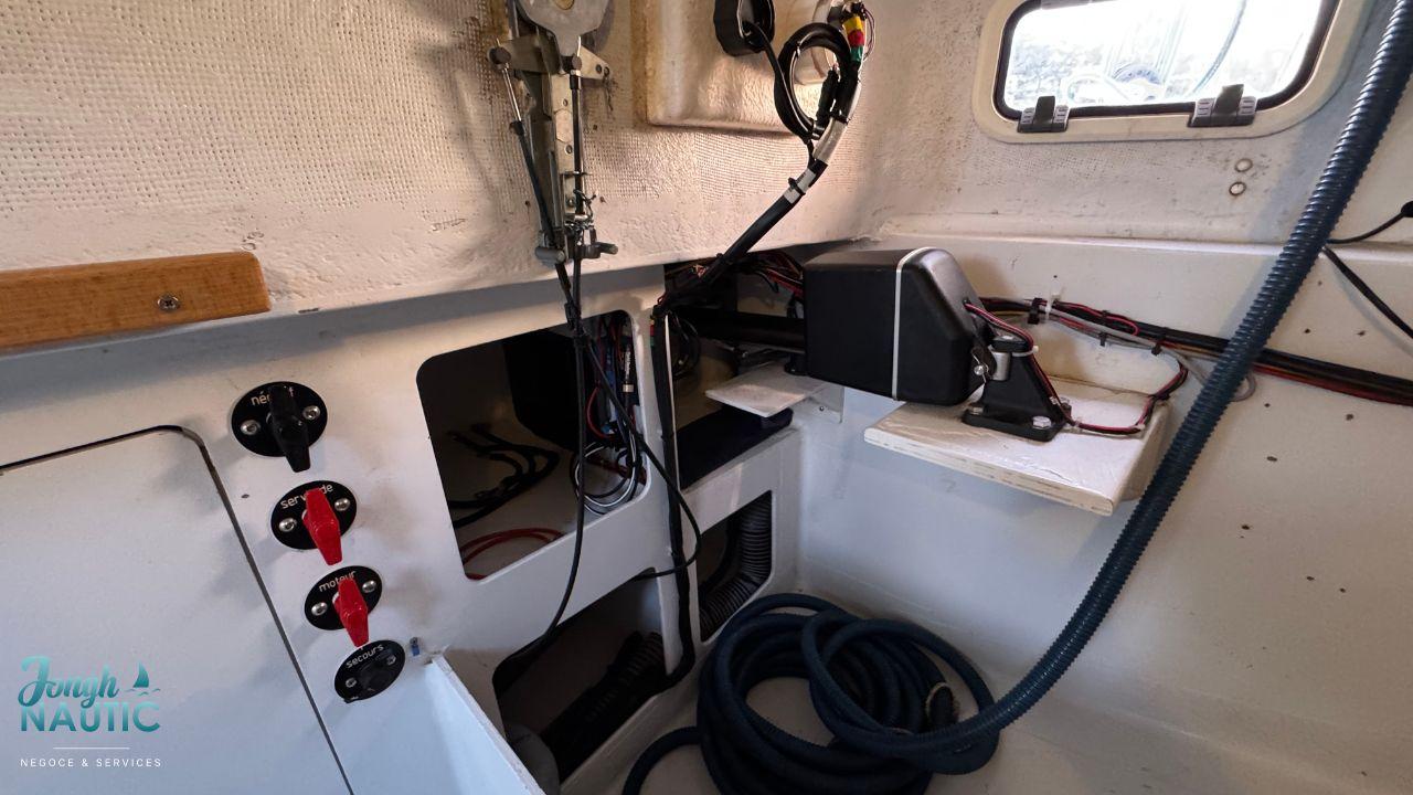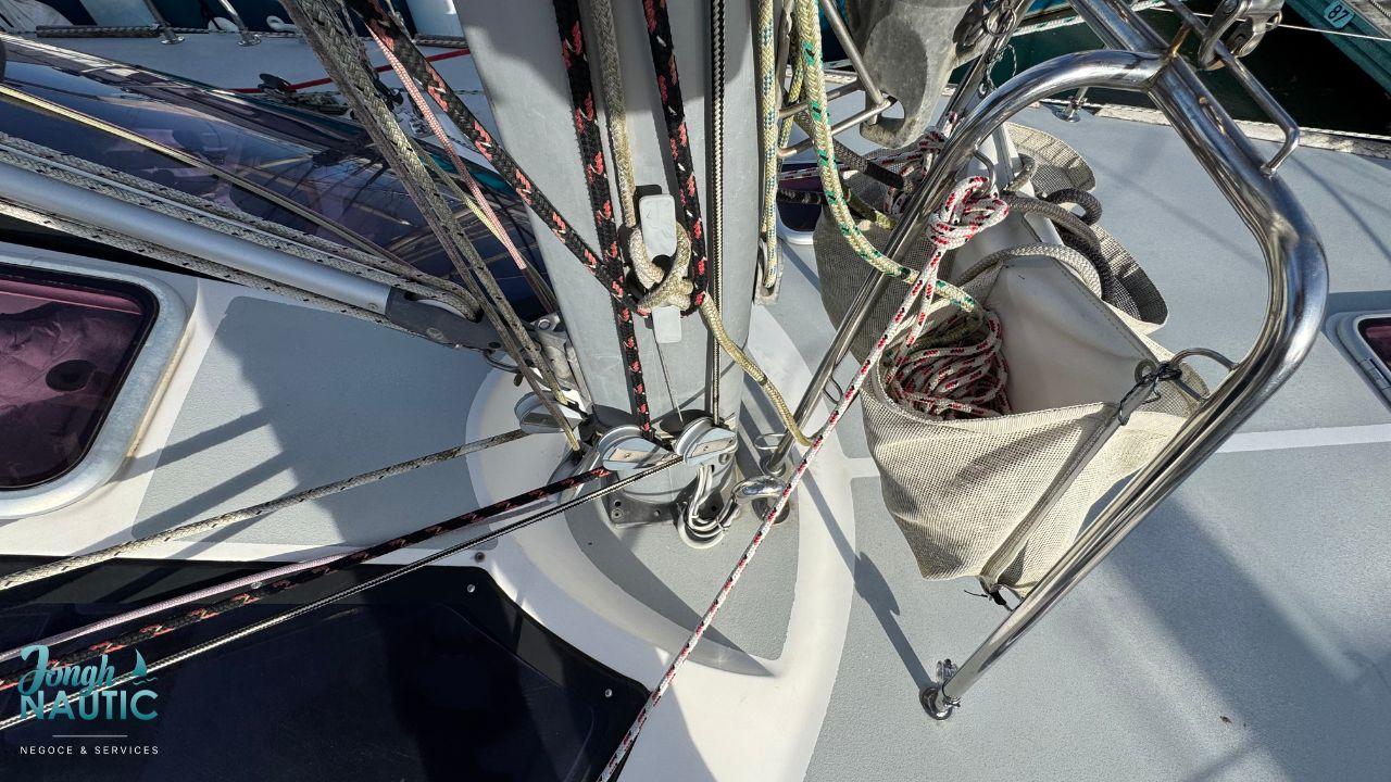 Toutes les manœuvres sont ramenées au cockpit sauf les drisses de génois, de trinquette et de spi.