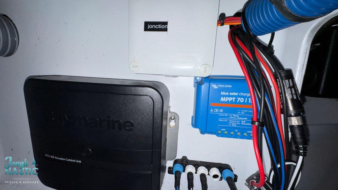 - capteur EV-1, centrale ACU-200 et pupitre de commande p70s (installés 08/2022 en remplacement du pilote Raymarine ST-6002 d’origine)
